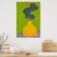 Dieser faszinierende Kunstdruck zeichnet sich durch eine moderne botanische Illustration aus, in der tiefblaue Blätter aus einer reich strukturierten gelben Vase sprießen. Set vor einem gemusterten Hintergrund mit einem harmonischen grünen Overlay, bringt dieses Stück eine lebendige und dennoch raffinierte Touch in jeden Raum.