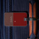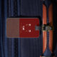 Modernes Braun/Rotes Gepäckstück mit Name Gepäckanhänger