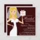 Eine hübsche blonde blau-mit Augen Braut hält ein Hochzeitsgeschenk gebunden mit einem rosa Bogen in diesem modernen Nehmen auf einer Brautpartyeinladung.