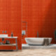 Moderne, orangefarbene Tapete mit dezenten, gebürsteten Mustern.