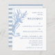 Erstellen Sie preiswerte Hochzeitseinladungen für Strandveranstaltungen, die in einem modernen blau-weißen Design mit Aquarellalgen auf der Vorderseite und dem gestreiften Muster auf der Rückseite gestaltet sind. Es ist eine schöne Idee für die Küste und unter dem Meeresthema Hochzeiten. Verwenden Sie die Vorlage, um die Einladungen für Hochzeiten mit Ihren Namen, Ort und Ort zu personalisieren.