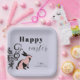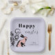 Schöne moderne pastellfarbene lila Osterpapiere Teller mit einer Hand illustriert rosa Hase und abstrakte blumengeschmückte Silhouette. Personalisieren mit Ihrem eigenen Familiennamen