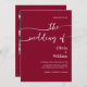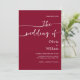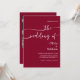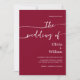 Mit dieser minimalistischen Hochzeitseinladung mit elegantem, modernem Drehbuch und einer kühlen bordeauxfarbenen Kulisse können Sie Ihren besonderen Tag feiern. Das im Lieferumfang enthaltene Foto-Layout fügt eine persönliche Touch hinzu, die ideal ist, um Ihre Liebe zu zeigen. Ideal für feierliche Hochzeiten, Weinberge oder romantische Abend. Vollständig anpassbar mit Ihren Hochzeitsdetails und Foto.