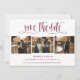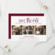 Elegante burgundy Hochzeit 3 Foto speichern Sie die Dattelkarten mit moderner Kalligraphie. Sie können diese Karte ganz einfach mit Ihren Bildern und Hochzeitsdetails, einschließlich einer Hochzeitswebsite, personalisieren.