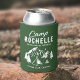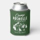 Camping Junggeselinnen-Abschied kann Kühler mit einem zeichn eines Campingplatzes mit Bergen, Bäumen, einem Holzfeuer, einem Zelt und einer Textvorlage, die leicht zu personalisieren ist.