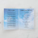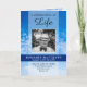 Modern Celebration Life Funeral Blue Sky Program Auf dem Cover, ein Foto Ihrer Lieben zusammen mit ihrem Namen und Lebensjahren. Im Inneren können Sie die obituary und Programm schreiben. Die Vorderseite und die Innenseite sind mit einem blauen Himmelshintergrund versehen. Auf der Rückseite können Sie Bestätigungen hinzufügen.