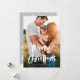 Diese elegante und moderne Urlaubsfotokarte verfügt über ein vollumfängliches Foto, ein modernes Schriftzeichen mit dem Titel "Frohe Weihnachten" und eine einfache Typografie. Auf der Kartenrückseite befindet sich ein passendes graues und weißes Schneeflockenmotiv (Sie können auch ein anderes Foto und/oder einen zusätzlichen Text auf der Rückseite hinzufügen). *Grußschrift und Backer Farbe sind anpassbar!