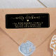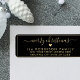 Elegante, moderne Schwarz-Gold-Hand-Weihnachtsfamilien-Rücksendeadressen-Aufkleber. Mit einem hübschen handgeschriebenen Drehbuch mit dem Sprichwort "Frohe Weihnachten" im Swash-Schwanz-Schriftart, einer kleinen Herzform, um den Hintergrund dünner Linien. Ideal für die Weihnachtszeit, einfach zu personalisieren mit Ihren Namen und Rücksendeadresse-Infos.