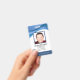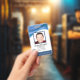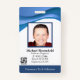 Personalisiertes abstraktes ID-Abzeichen mit coolem, modernem, blau gestaltetem Design über dem Foto des Softwareingenieurs oder IT-Reparaturtechnikers. Fügen Sie Ihr eigenes Foto und Ihre persönlichen Informationen hinzu, einschließlich Jobbezeichnung, Abteilungsname, ID-Nummer, Ausstellungs- oder Ablaufdatum sowie Firmenname und Firmenlogo. Kann mit Ihrem persönlichen Sicherheitsbarcode auf der Rückseite für Zugriff und Freigabe angepasst werden.