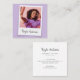 Einfache, moderne und lustige Visitenkarte mit Ihrem Foto in einem weißen Rahmen-Overlay und einem trendigen, handgeschriebenen Skripttypografie-Design. Auf der Rückseite ist ein minimalistisches Layout für alle Ihre Kontaktinformationen inklusive Social Media. Das ist die lila Version.