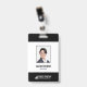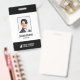 Ein modernes Business-ID-Abzeichen mit Foto, Name, Beruf eines Mitarbeiters. Die Mitarbeiter-ID des Unternehmens enthält auch den Firmennamen und das Firmenlogo. Die Farbe eines beliebigen Designelements dieses ID-Abzeichens kann personalisiert sein. Farbe: Schwarz