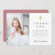 Personalisiertes modernes Cross Girl First Communion Foto Dankeschön Karte.