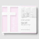 Einfaches und modernes Christliches Kreuz mit Schlagschatten. Design auf Gästebuch für Taufe Zeremonie in Blassrosa mit Text zu personalisieren. Sie können Foto und Text (Farbe, Schriftart, Größe und Position) ganz einfach ändern, indem Sie auf die Schaltfläche Anpassen klicken. Matching Baptism Einladungskarten. Erhältlich in hellblau für Jungen.