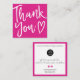 Moderne, minimalistische und stilvolle, weiße und heiß rosa Geschäftsorder danken Ihnen, Pinsel Skript Schriftart mit einem Herz. Fügen Sie Ihre sozialen Medien hinzu. Mit einem eleganten Script-Schriftart können Sie alle Farbenvarianten bearbeiten, Ihr Logo hinzufügen.