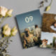 Doppelseitige Save the Date-Karte mit einem modernen, sauberen Goldfolien-Typografie-Design, das sich auf das Hochzeitstermin auf einem Foto des glücklichen Paares konzentriert. Fügen Sie drei weitere Fotos in einer sauberen Collage auf die Rückseite. Reinigen Sie Save the Date die Vorlagenkarte personalisiert mit Fotos.