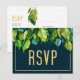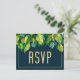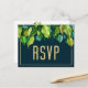 Modernes Deep Blue Eleganage Foliage Wedding RSVP Postkarte