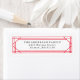 Fügen Sie ein individuelles Urlaubsadressen-Label hinzu, um ein stilvolles, personalisiertes Aussehen in Ihre Urlaubskartenumschläge zu schaffen. Die schicken Urlaubsstipps sind mit einem roten Deko-Rahmen und einem eigenen Text versehen. Die Labels eignen sich perfekt für Weihnachtskarten-Umschläge, Feiertagsfeiern und den Alltag.