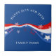Eine abstrakte amerikanische Fahne mit US Flagge in Rot und Blau. Alles Gute zum 4. Juli Sondertext und Familienname. Modernes patriotisches Design.