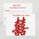 Diese moderne Double Happiness Wedding RSVP besteht aus dem Zeichen "Double Happiness" mit den Namen der Braut und Bräutigam vorne. Der Rücken besteht aus UAWG mit Namen, Abnahme, Frist für die UAWG und freie Wahl.