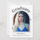 Die exquisite Graduiertenfeier postcard Einladung beinhaltet ein Foto des Absolventen, vorne sind der Name, die Schule und das Klassenzimmer in lässigem modernem Schwarz geschrieben.