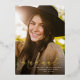 Ein spielerischer, aber einfacher Script-Absolvent in Folie sitzt am unteren Ende eines senkrechten Fotos. Der benutzerdefinierte Text enthält Platz für den Namen des Absolventen und auch die Schule und das Jahr Details. Der neutrale schwarze Backer hat ein einfaches Rastermuster, und die Farbe kann durch Klicken auf "Weitere Anpassung" geändert werden. Das Zentrum hat Platz für Graduiertenparty Einladungstext oder kann leer verlassen werden. Mit diesem Design verkünden Sie die Leistung Ihres Absolventen an Freunde und Familie!
