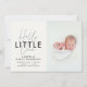 Modernes Drehbuch Foto hallo wenig eine einfache stilvolle Geburtsankündigung. Moderner Polka-Dot-Backer.
