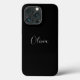 Personalisierter, moderner Script-Name Text monogram solide schlichte Farbe mädchenhaft elegant elegante schwarz-weiß Text iPhone Gehäuse. Anpassen, personalisieren Sie es mit Namen, Monogramm oder Text.