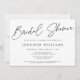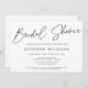 Ein klassischer weißer Hintergrund gepaart mit moderner Kalligraphie-Schrift und eleganter Typografie in schwarz verleihen dieser Brautdusche einen zeitlosen und dennoch modernen Stil. Editieren Sie einfach die Vorlage mit Ihrem Text und wählen Sie Papieroptionen. In unserem Geschäft stehen Ihnen die Koordinationsgegenstände zur Verfügung.
