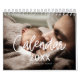 Ein moderner Foto-Kalender mit einer modernen Typografie, um mit Ihren Familienbildern, ein perfekter Weg, um das Jahr 2023 zu starten. Vollständig anpassbare Textfarben.