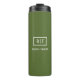 Modernes dunkelolive-grünes Monogramm Thermosbecher