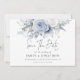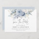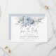 Moderne Dusty Blue Florals QR Code Hochzeit. Verfügbar in digitaler Form und gedruckt. Herrliche Blumen in hellblau und weiß und ein elegantes Set-Skript für Save the Date. Die Erholung des Textes können Sie einfach mit Ihren Daten personalisieren. Fügen Sie Ihren QR-Code zu Ihrer Hochzeitswebsite auf der Rückseite oder löschen Sie diesen und den Text auf der Rückseite, wenn nicht erforderlich.