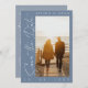 Modernes Dusty Blue Script Foto Hochzeit Save The Date