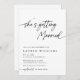 Ankündigen Sie den fröhlichen Anlass mit unserer "Modern Simple She's Get Married Bridal Shower Einladung". Diese elegante und minimalistische Einladung spiegelt das Wesen der zeitgenössischen Eleganz wider, die sich perfekt eignet, um die kommenden Neuheiten der Braut zu feiern. Mit sauberen Linien und schlichter Eleganz strahlt diese Einladung Modernität aus und bewahrt gleichzeitig einen zeitlosen Charme. Die kühne Erklärung "She's Getting Married" steht im Mittelpunkt der Bühne und gibt den Ton für eine Feier voller Spannung und Vorfreude. Passen Sie die Einladung an, um den individuellen Stil der Braut und das Thema des Brautparty zu reflektieren. Ob es um das Hinzufügen persönlicher Touchs, das Anpassen von Farben an die Hochzeitspalette oder um zusätzliche Veranstaltungsdetails geht, diese Einladung kann auf den Anzug der einzigartigen Vision der Feier zugeschnitten werden. Mit seinem modernen Design und seiner mühelosen Einfachheit verspricht unsere "Modern Simple She's Getting Married Bridal Shower Invitation" die Bühne für eine schicke und unvergessliche Ansammlung vor der Hochzeit, in der die Braut zu sein stilvoll geehrt wird, Set.
