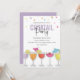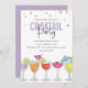 Eine whimsical Cocktail Party Einladung mit niedlichen Weingläsern, farbenfrohen Regenschirmen, Limonen Zitronen und Kirschen. Ideal für Geburtstagsfeiern, Jubiläen, Hochzeitsfeiern oder alle Treffen. Erhältlich in den Farben Blau, Orange, lila und Rosa. Dieses Design besticht durch ein schlichtes Cocktail-Party mit modernem minimalistischem, whimsical Aquarellgetränk im Sommer, modernem zeitgenössischem zeitgenössischem Stil, lustigen rosafarbenen Champagneralkohol, hausgemachten Tropengeburtwein, eine lässige, romantische, moderne minimalistische Kalligrafie, eine moderne minimalistische Schrift, einfache Erwachsenengetränke.