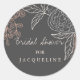 Moderne, einfache Blumenpfanne Sketch Grau Brautparty Klassischer Rundsticker. Farbpalette aus Holzkohle grau, Creme und heller Pfirsich. Einfach, knusprig und modern gezeichnet, Line Art Design von international bekannter und lizenzierter Künstlerin und Designerin, Audrey Jeanne Roberts. Urheberrecht.