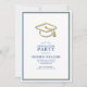 Diese Einladung zur Abschlussfeier ist einfach. Blau und Gold sind modern, und der minimalistische Stil ist perfekt. Eine Graduierungshülse ist oben. Sehen Sie die Koordination der Artikel in unserem Shop, Verzauberte Finch.