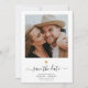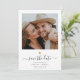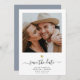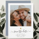 Einfache minimalistische Save the Date-Card mit hübsch bedrucktem Goldherz unter Ihrem Lieblings-Verlobung-Foto. Moderne Schrift-Kalligraphie Save the Date über formale Hochzeitsdetails. Platz für zusätzliche Nachrichten oder Details wie eine Hochzeitswebsite auf der Rückseite über eine staubblaue Kulisse. Lass deine Liebe glänzen mit diesem aktualisierten Klassiker!