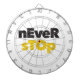 Modernes, einfaches, mutiges typografisches Design eines Sprichworts "Never stop" in Gelb und Schwarz. Coole, urbane, trendige und spielerische Grafikkunst