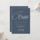 Projekt ein Gefühl von moderner Einfachheit und Eleganz mit dieser stilvollen einfachen Brautdusche Einladung in Marineblau mit ecru beige Text. Eine schöne Kalligraphie in Verbindung mit einer einfachen Serifenfigur präsentiert Ihre Veranstaltungsdetails mit modernem Flair. Das Ergebnis ist ein geschmackvoller minimalistischer Look, der stets im Stil gehalten ist. Personalisieren Sie den Text mit Ihren Veranstaltungsdetails in der benutzerfreundlichen Textvorlage.