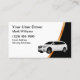 Fahrkarte für einen Uber-Fahrer oder einen Autoservice mit dem Bild eines modernen SUV-Fahrzeugs im Hintergrund und einfachem Textlayout, das Sie ersetzen können, um dies zu Ihrem eigenen zu machen. Arbeitet für einen Taxifahrer, einen unabhängigen Uber-Kurier oder einen Autoservice.