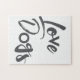 Modernes, spielerisches, kühn grafisches Design eines Sprichworts "Liebe Hunde" in Graufarbe. Kreative, experimentelle, coole und trendige Typografie.