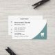 Modernes Design der Dental Office Visitenkarte mit einem aquamarinen, modernen Designelement und einem Zahsymbol, das in einer dezenten Form angezeigt wird, und einem strukturierten Layout mit Terminvorlage auf der Rückseite. Ihre Karten dienen als Terminkarten für Ihre Kunden, die auf einem abgerundeten Visitenkartenbestand in der Ecke präsentiert werden.