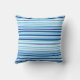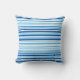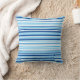 Dieses Kissen ist mit einem modernen monochromen gestreiften Muster in Weiß- und Blautönen gestaltet.