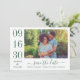 Moderne und stilvolle Hochzeitskarten sichern die Datumskarten mit einem horizontalen Verlobung-Foto mit typografischem Design, das fett und elegant Hochzeitstermin-Zahlen mit einem einfachen Monogramm der Braut und Bräutigam-Namen beinhaltet. Reiche smaragdgrünen / waldgrün und weiß Farbschema.