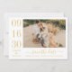 Moderne und stilvolle Hochzeitskarten sichern die Datumskarten mit einem horizontalen Verlobung-Foto mit typografischem Design, das fett und elegant Hochzeitstermin-Zahlen mit einem einfachen Monogramm der Braut und Bräutigam-Namen beinhaltet. Farbschema Gold und Weiß.