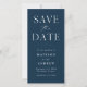 Mit dieser stilvollen, modernen Foto Save the Date-Karte verkünden Sie Ihr Hochzeitstag. Das Design zeigt "Save the Date" auf der Vorderseite in weißen Serifen und Skript-Schriftart mit einem marinen Hintergrund. Personalisieren Sie die minimalistische Ankündigung Datum freihalten, indem Sie Namen, Datum und Hochzeitsort hinzufügen. Die Karte kehrt um, um Ihr Lieblings-Verlobung-Foto anzuzeigen. Die Ankündigung Datum freihalten ist perfekt für jedes Hochzeitsthema.