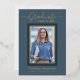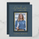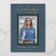 Wunderschön elegante 1 Foto Abschluss Anzeigenkarten. Moderne Schrift mit Kalligrafieschrift in der Wahl von Gold, Silber oder Rose. Ihr Foto ist auch dünn in einer doppelten Folientrimmung eingearbeitet. Das Design wird durch einen Hintergrund in den Farben staubblau ergänzt. Die Rückseite der Karte bietet einen personalisierten Anzeigentext für diesen Diplom. Um mehr zu sehen, besuchen Sie meinen Shop hier unter "www.Zazzle.com/LakeViewCardCo". Danke