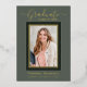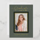 Wunderschön elegante 1 Foto Abschluss Anzeigenkarten. Moderne Schrift mit Kalligrafieschrift in der Wahl von Gold, Silber oder Rose. Ihr Foto ist auch dünn in einer doppelten Folientrimmung eingearbeitet. Das Design wird durch einen Hintergrund in den Farbtönen Salbeigrün ergänzt. Die Rückseite der Karte bietet einen personalisierten Anzeigentext für diesen Diplom. Um mehr zu sehen, besuchen Sie meinen Shop hier unter "www.Zazzle.com/LakeViewCardCo". Danke
