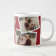 Moderne Elegant 4 Foto Collage Familiengeschenk Riesenkaffee Tasse. Klicken Sie auf die Schaltfläche Bearbeiten, um dieses Design mit Ihren eigenen Fotos und Texten anzupassen. Die rote Hintergrundfarbe kann geändert werden.