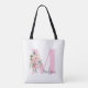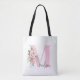 Entwerfen Sie Ihre eigene personalisierte Tasche mit einem individuellen Buchstaben Initial Monogramm mit elegantem Blumenstrauß in Aquarellfarben und modernem Typografie-Design.